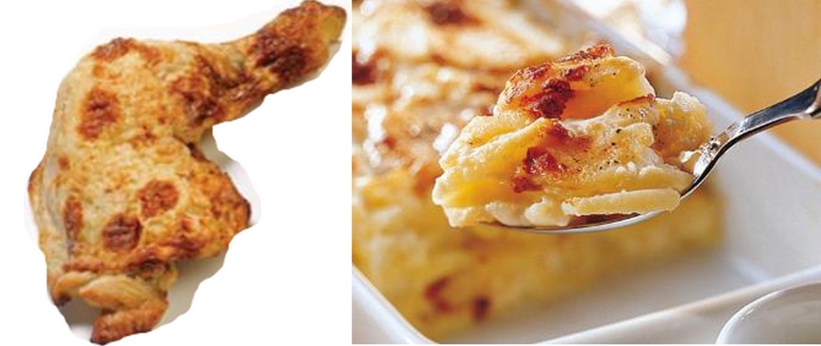 pommes de terre en lamelles, lait, sauce à la crème, fromage fondu, beurre, noix de muscade.